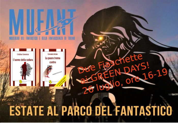 Continua l’estate al “Parco del Fantastico” del Mufant – Museo del Fantastico e della Fantascienza di Torino e DOMENICA 26 LUGLIO, dalle ore 16 alle ore 19, due nostri autori vi aspettano alla prima e all’ultima tappa dell’itinerario “GREEN DAYS: Passeggiata letteraria nel Parco e labs creativi”.