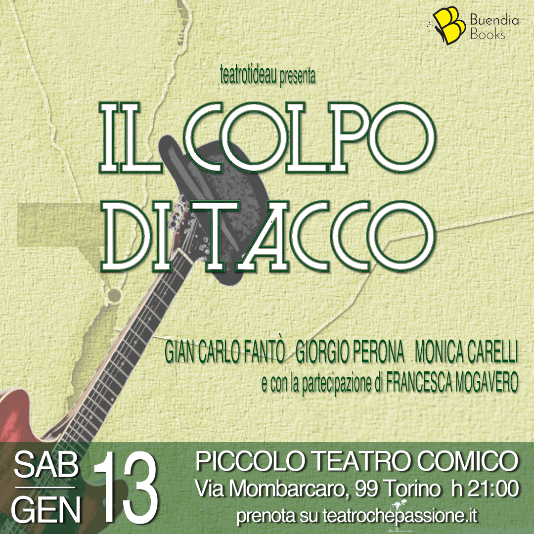Sabato 13 gennaio alle ore 21 al Piccolo Teatro Comico (Via Mombarcaro 99, Torino) Gian Carlo Fantò ci accompagna nel suo romanzo d’esordio Il colpo di tacco (Menzione Speciale al Concorso Letterario Tre Colori 2022 e Finalista al Premio Città di Como 2022 – Sezione Opera Prima) con uno spettacolo teatrale brillante e originale, per la prima volta in scena!