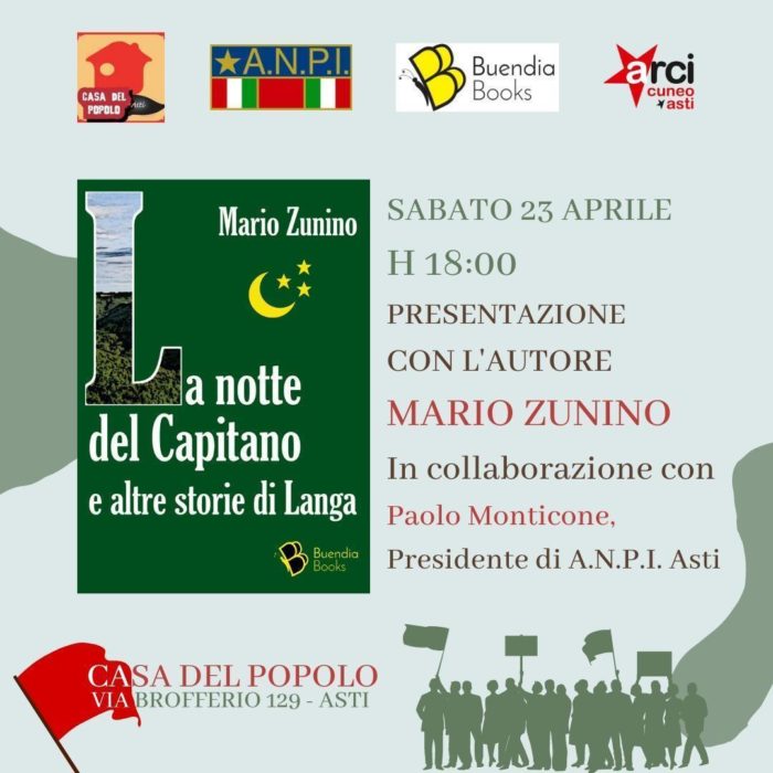 Sabato 23 aprile alle ore 18 Mario Zunino presenterà La notte del Capitano e altre storie di Langa alla Casa del Popolo di Asti!