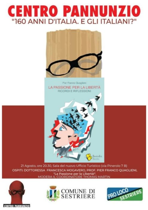 Sabato 21 agosto alle ore 20.30 La passione per la libertà, il nuovo libro di Pier Franco Quaglieni, sarà presentato in anteprima a Sestriere, presso la Sala del nuovo Ufficio Turistico (via Pinerolo 7B)
