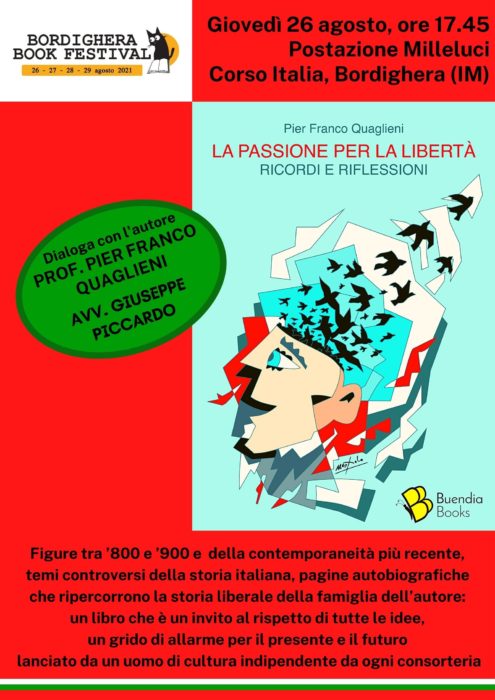 Giovedì 26 agosto alle ore 17.45 La passione per la libertà, il nuovo libro di Pier Franco Quaglieni, sarà presentato in anteprima a Bordighera, nell’ambito del Bordighera Book Festival, presso la postazione Milleluci in corso Italia.
