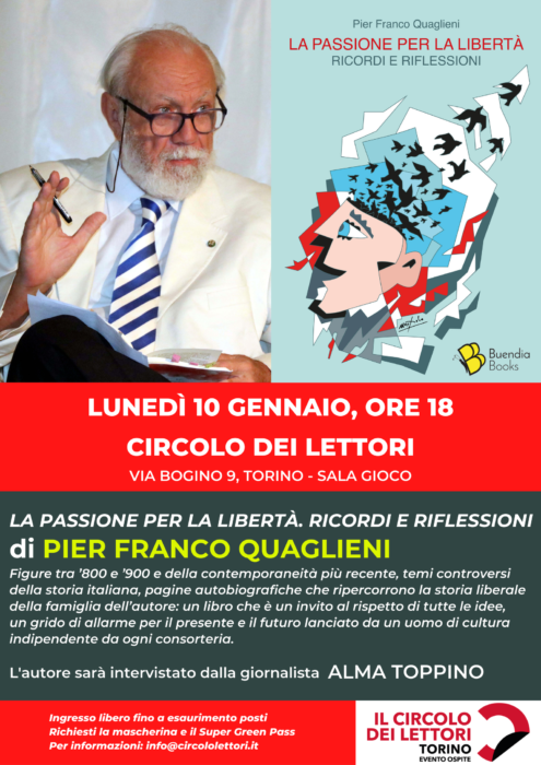 📆 Lunedì 10 gennaio alle 18 Pier Franco Quaglieni presenterà il suo libro La passione per la libertà. Ricordi e riflessioni al Circolo dei Lettori, in Sala Gioco (via Bogino 9, Torino)