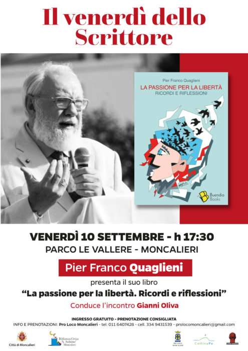 Venerdì 10 settembre alle 17.30 al Parco delle Vallere (corso Trieste 98, Moncalieri), lo storico GIANNI OLIVA presenterà il nuovo libro di PIER FRANCO QUAGLIENI La passione per la libertà. Ricordi e riflessioni.