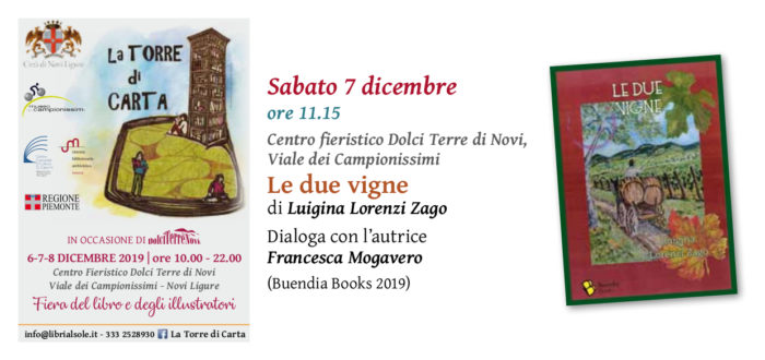 Le due vigne di Luigina Lorenzi Zago è un’appassionante saga familiare che parla di amore, di emozioni, di territorio, di vino… Scopriamola insieme il 7 dicembre alle ore 11.15 in occasione de La Torre di Carta, al Centro fieristico Dolci Terre: una gustosa opportunità per parlare di buon vivere e buon leggere!