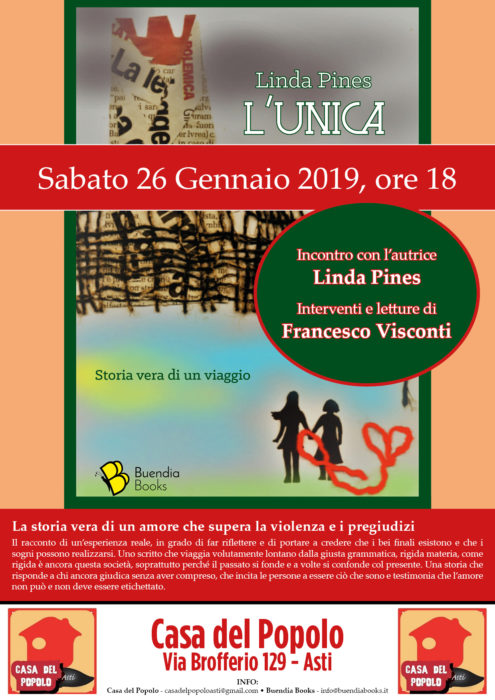 Sabato 26 gennaio alle ore 18 il libro sarà presentato alla Casa del Popolo di Asti, con l’autrice e gli interventi e le letture di Francesco Visconti