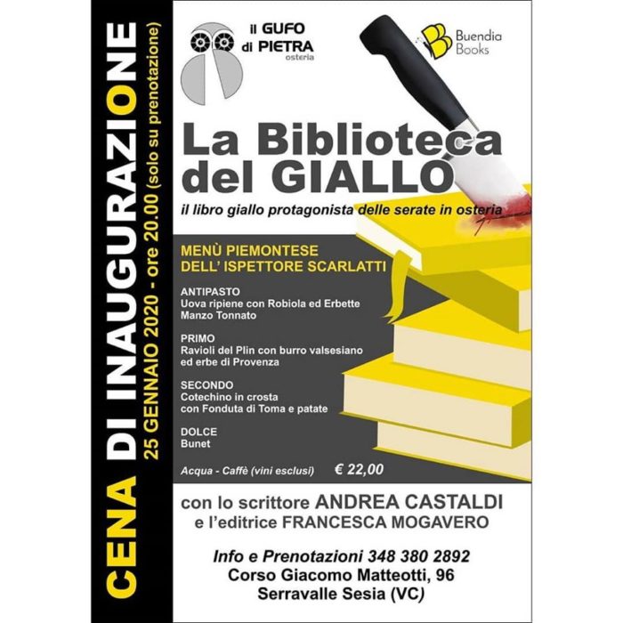 L’ispettore Scarlatti e il suo autore, Andrea Castaldi, inaugurano la Biblioteca del Giallo de Il Gufo di Pietra – Osteria!