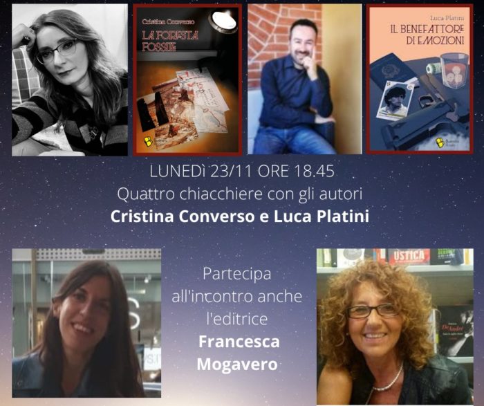 Lunedì 23 novembre alle ore 18.45 la libraia Antonella Menzio dialogherà con Cristina Converso e Luca Platini, autori de La foresta fossile e Il Benefattore di emozioni.