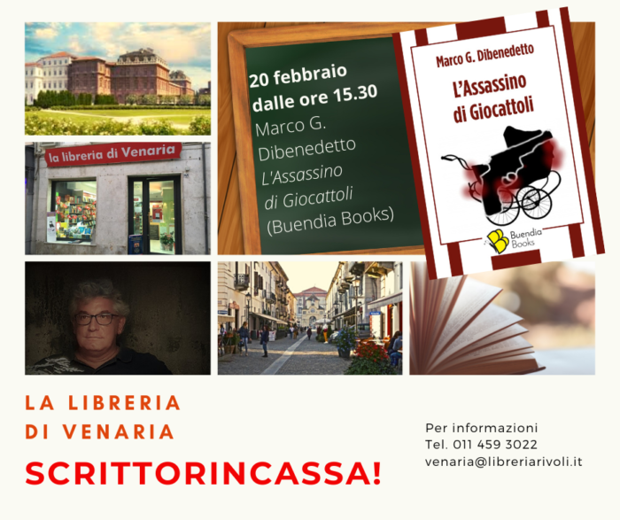 Sabato 20 febbraio dalle ore 15.30 Marco G. Dibenedetto vi aspetta a “La Libreria di Venaria” assieme a L’Assassino di Giocattoli, un racconto noir da leggere… in un sorso, ma il cui sapore non svanisce.