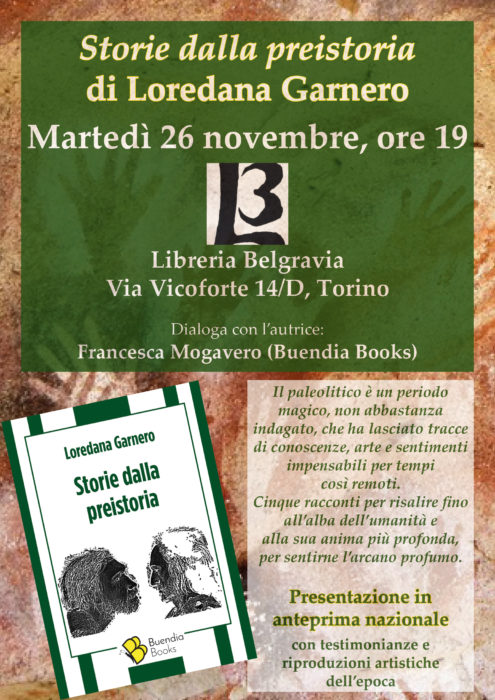 Il 26 novembre alle ore 19 Storie dalla preistoria di Loredana Garnero arriva in anteprima nazionale alla Libreria Belgravia Torino per un incontro speciale con testimonianze e riproduzioni artistiche dell’epoca!
