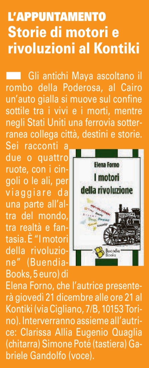 Sei racconti a due o quattro ruote, con i cingoli o le ali, per viaggiare da una parte all’altra del mondo, tra realtà e fantasia, mentre il vento della rivoluzione e della libertà continua a soffiare.