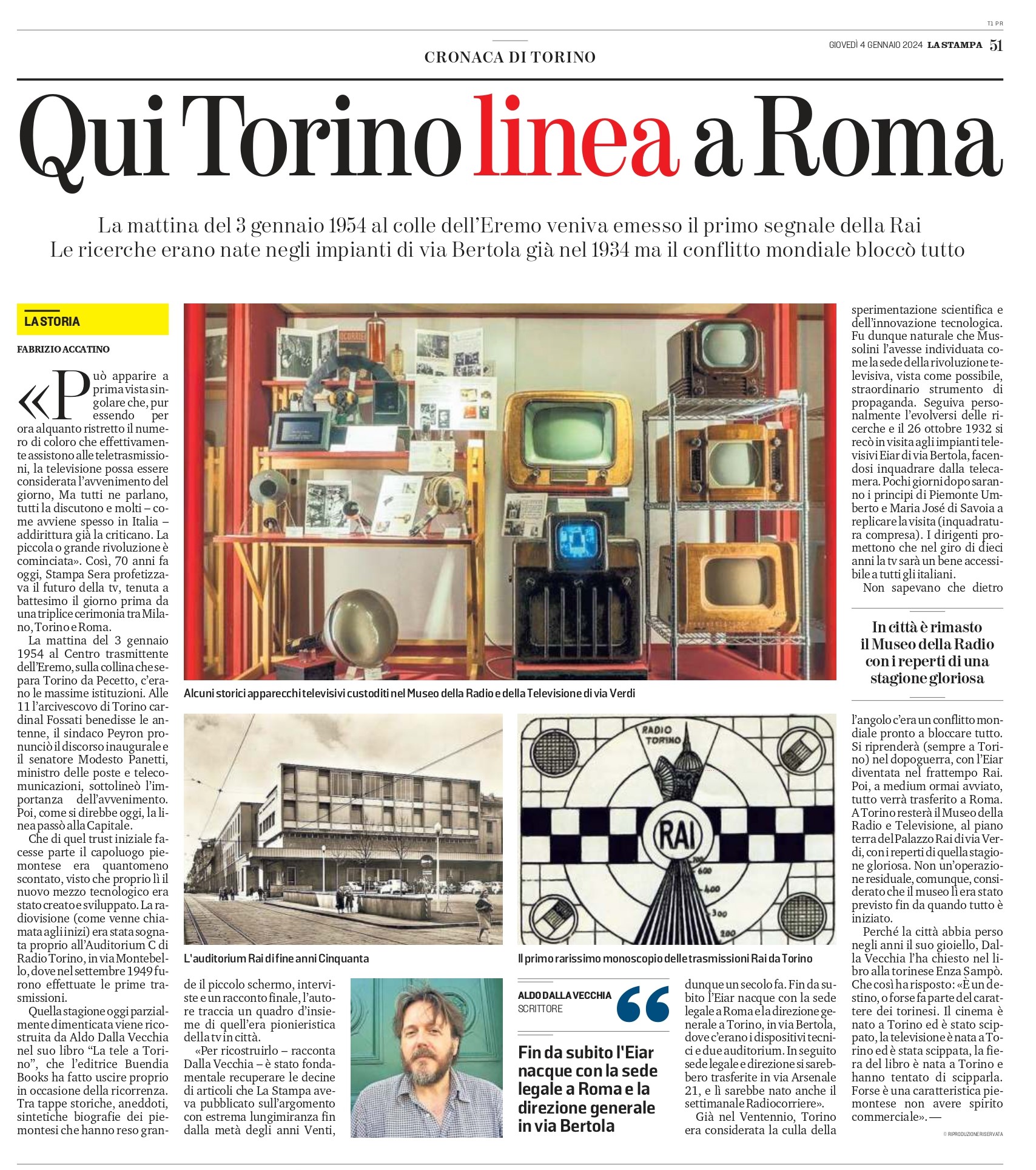 Il 3 gennaio 2024 la televisione italiana compie le sue prime 70 primavere: Aldo Dalla Vecchia celebra questo anniversario con un punto di vista ancora poco indagato, le origini sabaude della tivù.