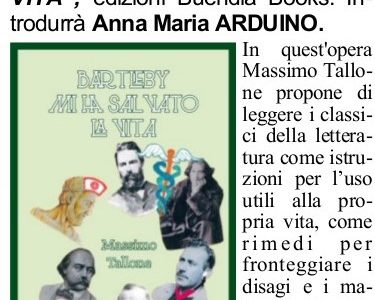 Bartleby mi ha salvato la vita al Centro Pannunzio! Massimo Tallone vi aspetta il 7 gennaio alle ore 18 a Torino, in via Maria Vittoria 35H!