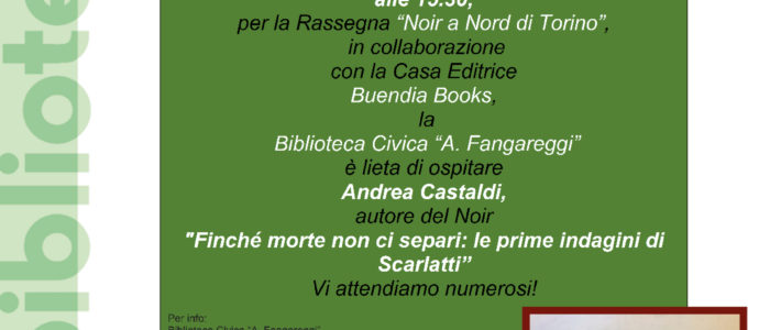Andrea Castaldi a San Maurizio Canavese: prima presentazione di “Finché morte non ci separi” alla Biblioteca “A. Fangareggi”, nell’ambito della rassegna “Noir a Nord di Torino”